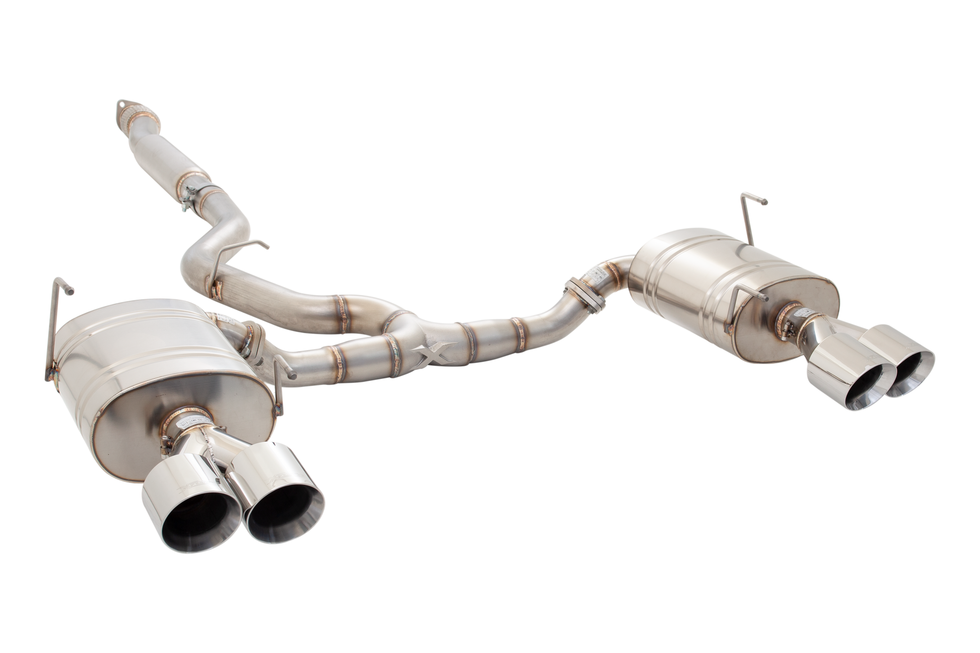 Featuring a 3” centre section with hot-dog style resonator, the mandrel-bent system splits into twin 2.5” bore rear sections that allow the exhaust gasses to efficiently flow through twin oval rear mufflers, before exiting via the four polished exhaust tailpipe trims.
